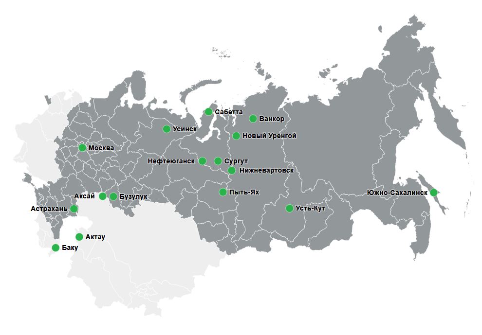 Wellbore Integrity Solutions выполняет шельфовые проекты в Балтийском, Каспийском, Баренцевом и Охотском морях, а также работу на суше по всему Региону Россия и СНГ.